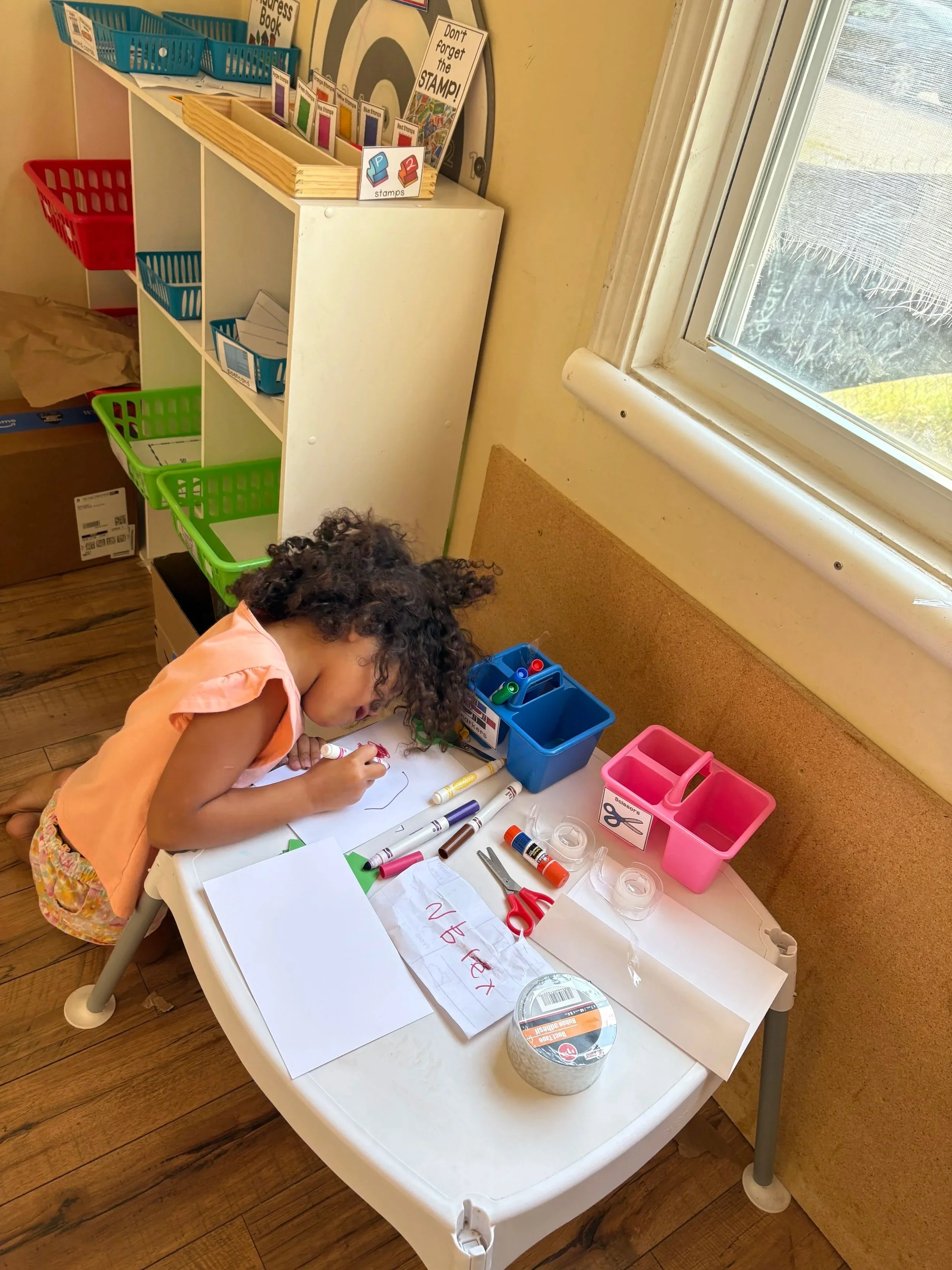 Sometimes we ended up with a confetti-style “paper snowstorm,” but even cleaning up became learning: matching materials to bins, identifying labels, and taking responsibility for the classroom.
